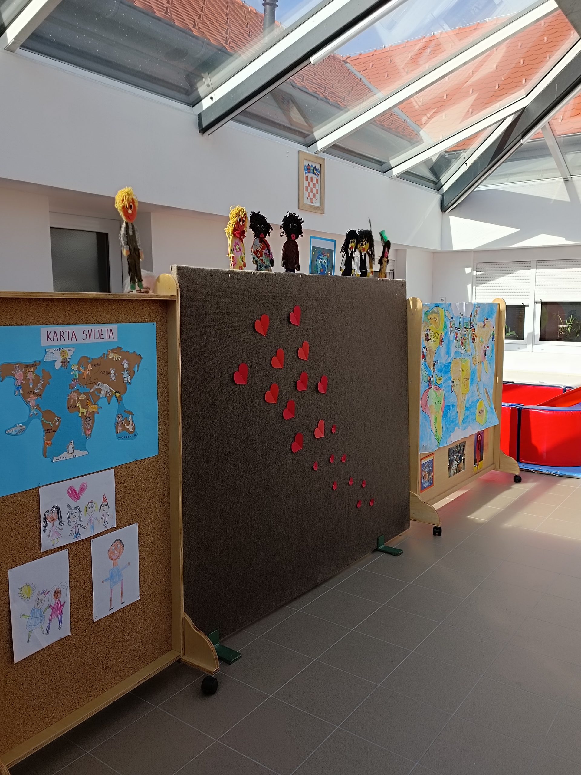 U tjednu od 3. listopada do 7. listopada u dječjem vrtiću obilježili smo “Dječji tjedan”. Vođeni prepoznatljivim motom dječjeg tjedna “Ljubav djeci prije svega” tjedan je bio ispunjena zanimljivim dječjim aktivnostima, pjesmama i druženjima. Svaka skupina je na svoj način obilježila tjedan posvećen djeci. Povodom ovog tjedna starije odgojne skupine zajedno sa svojim odgojiteljicama ugostile su prve razrede OŠ J.J. Strossmayera te zajedno pogledale igrokaz koje su pripremile odgojiteljice na temu “Djeca svijeta”. Zajedničkim druženjem posebno smo se posvetili osvještavanju djece prihvaćanjem različitosti i pravima koje djeca imaju. Tako da su iz tih dječjih prava nastali njihovi veseli, obojani dlanovi s porukama za odrasle.