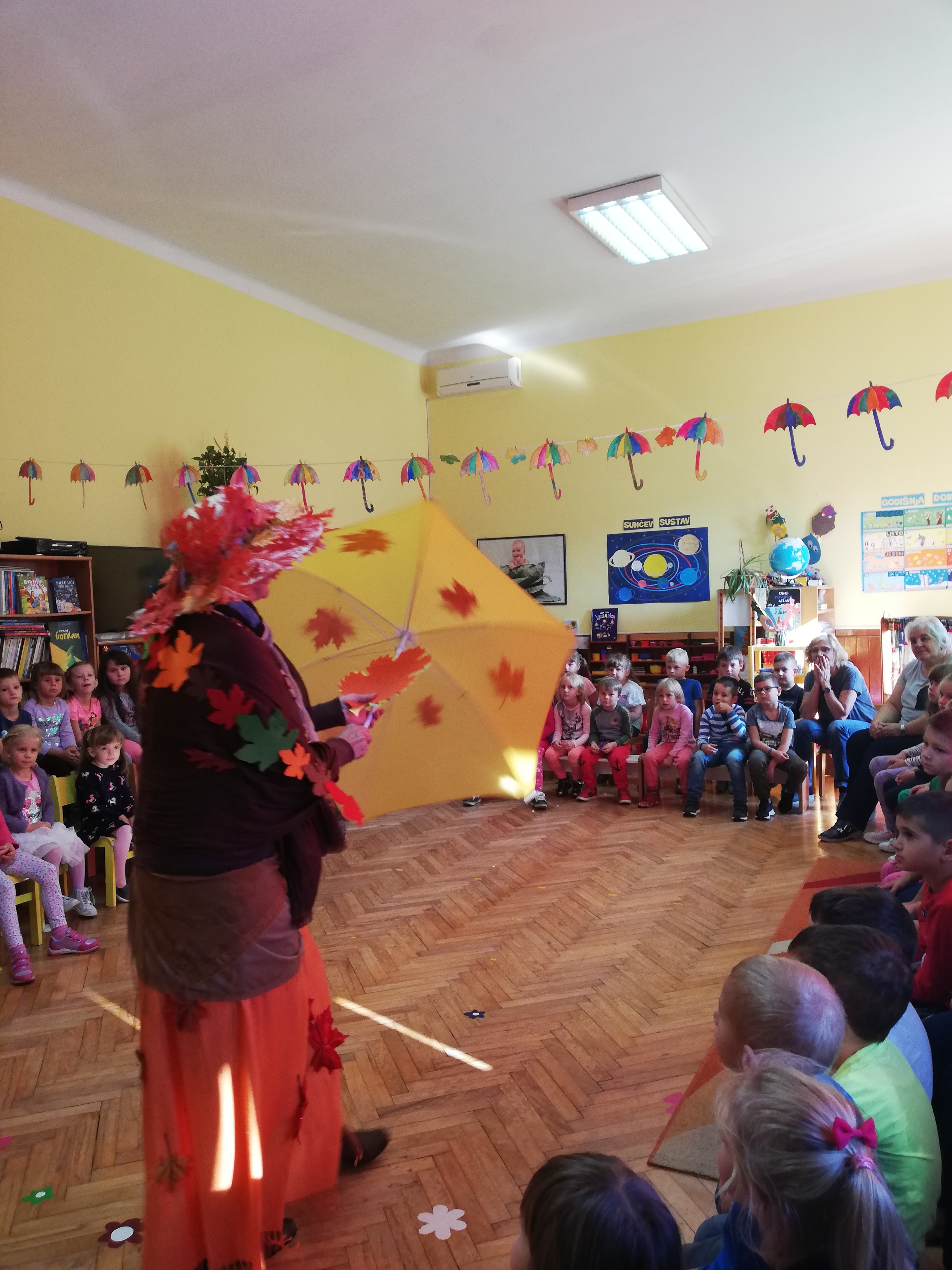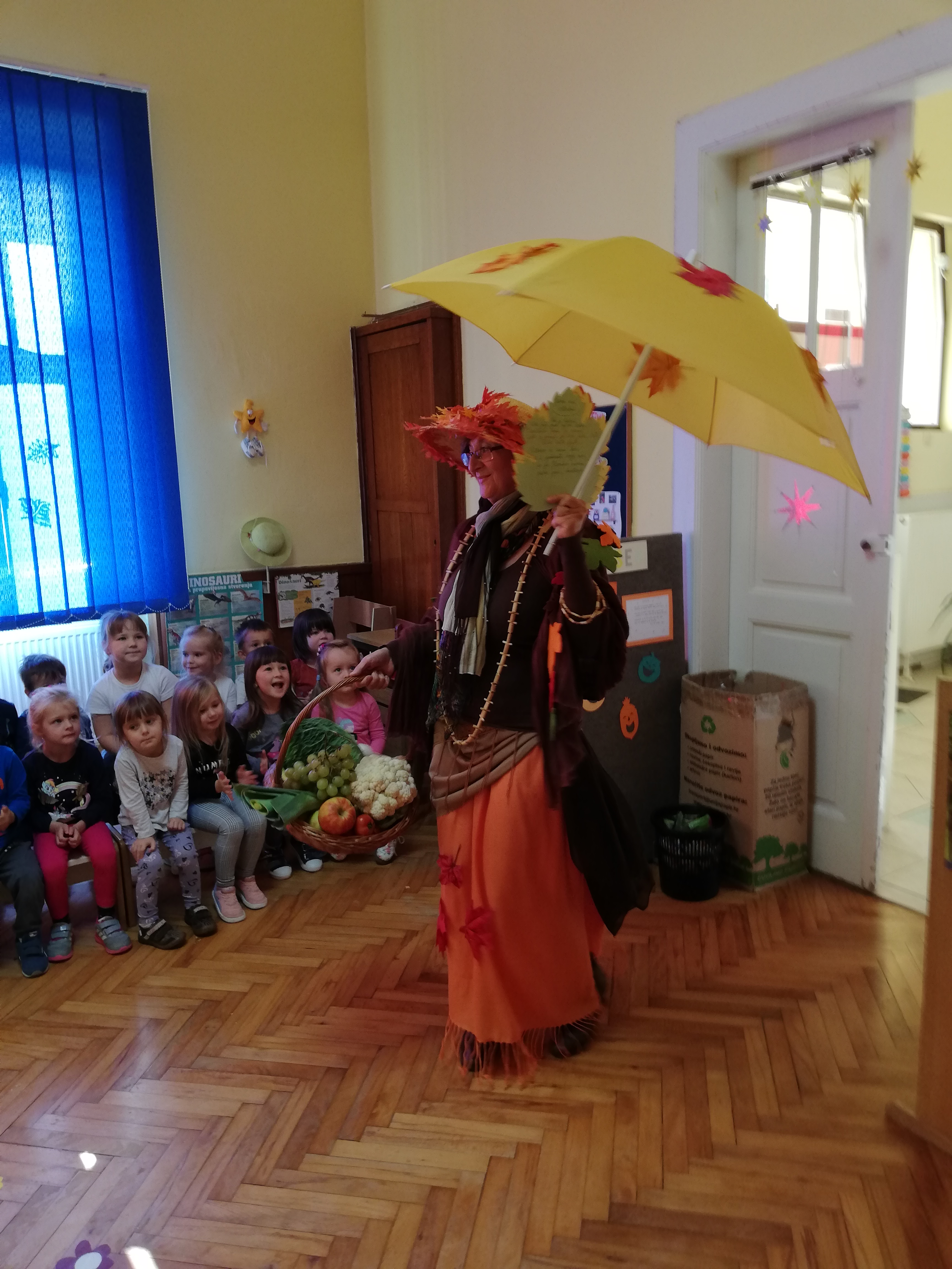 Vrtić “Jaglac” i ove je jeseni posjetila teta “Jesenka“. Donijela je pregršt voća i povrća u svojoj košari. Svojim kistom obojala voćnjake, vinograde, šume i dvorišta. Kako bi se Jesenka osjećala ugodno u našem vrtiću djeca od najmlađih do najstarijih zajedno sa svojim odgojiteljicama priredila su različite pjesmice, recitacije i dramske improvizacije na temu “jesen”. Dok je Jesenka djeci postavljala zanimljive zagonetke o voću i povrću, podsjetila je djecu koliko je važno i zdravo jesti njezine plodove. Počastila je djecu jabukama, kruškama i kokicama, a na rastanku u našem dvorištu koji je bio obasjan suncem šetala i družila se s djecom.